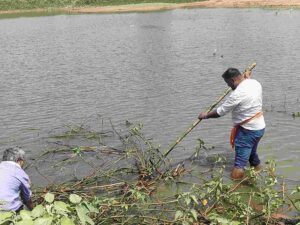 लेकिन समय काल परिस्थिति के अनुसार बोर खनन के कारण जल स्तर लगातार नीचे गिर रहा है युवा वकील रविंद्र कुमार देशमुख ने विचार गोष्ठी को संबोधित करते हुए कहा कि शासन को ध्यान देना चाहिए और क्षेत्र में बड़े बांध बनाना चाहिए उन्होंने शासन का ध्यान इस ओर आकर्षित किया कि ग्राम बारंगवाड़ी में जो डैम के लिए शासन ने जगह चिन्हित की है वहां डैम का निर्माण प्रारंभ किया जाना चाहिए किसान रामराव देशमुख का कहना है कि बिजली के बिल बिजली की कटौती भी एक समस्या है नल जल योजना में गांव के लोग पानी का सदुपयोग करें इस कोई भी ध्यान देना चाहिए गांव में जल संरक्षण के लिए जागरूकता अभियान चलाया जाना चाहिए वकील राजेंद्र उपाध्याय ने उपस्थित जन समुदाय को संबोधित करते हुए कहा कि तालाब में न केवल जल का संग्रहण होता है बल्कि जल में रहने वाले जीव जंतुओं के लिए भी यह अत्यंत आवश्यक होता है गांव के लोगों को चाहिए कि इस तालाब के पानी में कपड़े ना धोए पूजन की सामग्री ना डालें और तालाब को स्वच्छ और अच्छा रखने के लिए सामाजिक सरोकार के रूप में काम करें बचपन प्ले स्कूल अखिल विश्व गायत्री परिवार जंबाडा के युवा एवं किसान सहित गांव के अधिकांश लोगों ने तालाब की सफाई कर तालाब में से प्लास्टिक और अनुपयोगी पूजन सामग्री जो गांव के लोग तालाब में डाल देते थे उसे साफ सफाई कर लगातार अभियान चलाने का आवाहन किया गांव के सरपंच रामचंद्र देशमुख ने बताया कि वह एक माह के अंदर इस तालाब का सौंदर्यीकरण कर जल स्रोतों को सहेजने का पुनीत कार्य करेंग