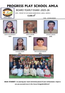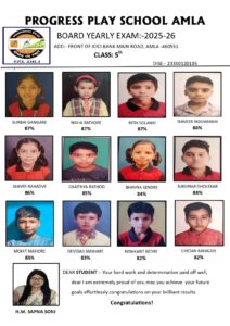 प्रोग्रेस प्ले स्कूल, आमला का बोर्ड कक्षाओं (5वीं एवं 8वीं) का परिणाम शत-प्रतिशत, विद्यार्थियों का शानदार प्रदर्शन